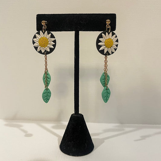 Daisy and Leaf Dangle Earrings