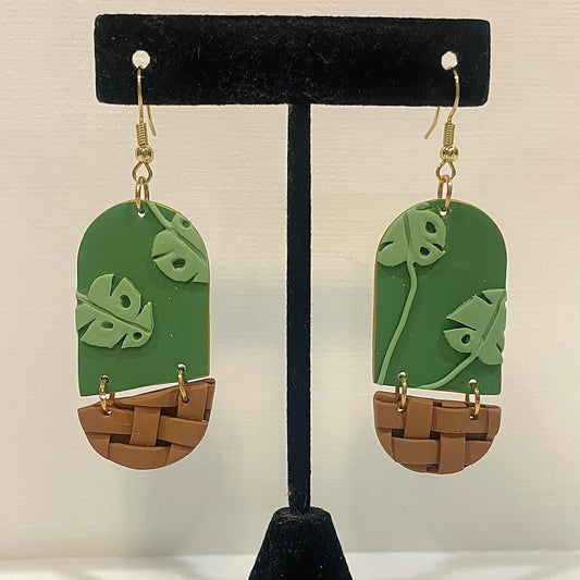 Monstera Leaf and Woven Basket Split Oval Dangle Earrings (Copy)