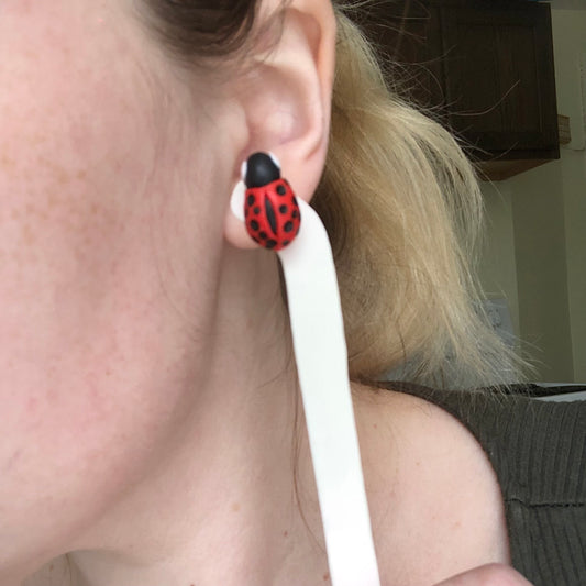 Neutral Herringbone Rectangle Dangle Polymer Clay Earrings