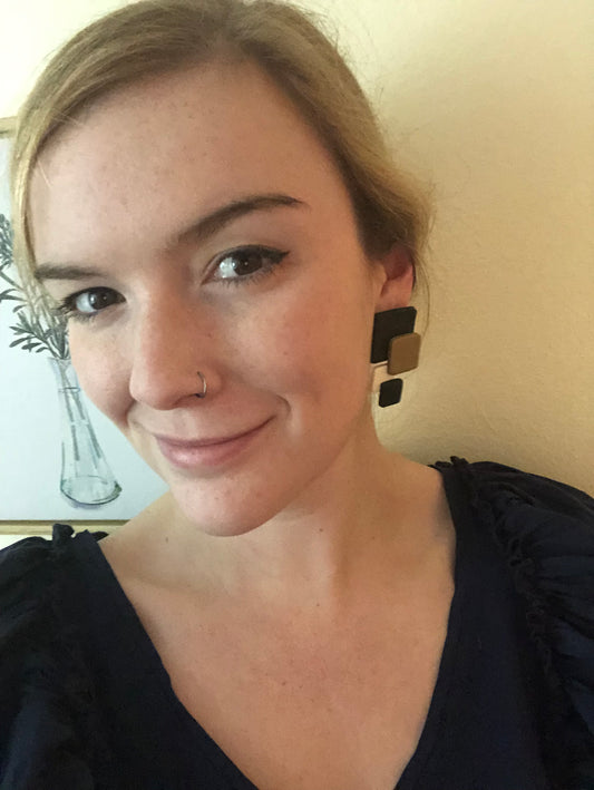 Black and Gold Patterned Polymer Clay Mega Stud Earrings
