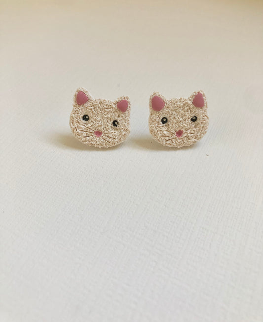 White Cat Polymer Clay Stud Earrings